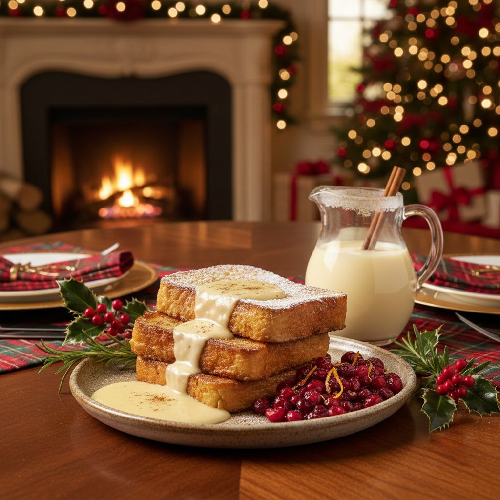 ![]() | Eggnog-soaked French toast baked for a hearty breakfast. |