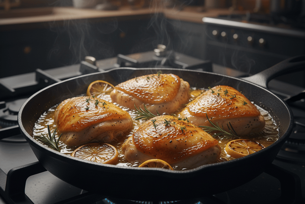 Season the chicken simply with salt, pepper, and dried or fresh herbs before it hits the pan.